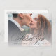 Les cartes de remerciement sophistiquées comprennent la calligraphie "merci" classique avec la photo du couple, simple et élégant, Grande photo remerciez les cartes postales pour le mariage vintage, mariage traditionnel, mariage classique et d'autres événements. Sélectionnez "Cliquez pour customiser plus loin" dans la section "Personnalisez ce modèle" pour ajuster la position et la taille de votre photo. Voir toutes les pièces correspondantes dans la collection.