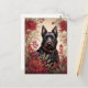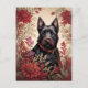 Une carte postale élégante avec un portrait d'un chien écossais Terrier, capturant son essence royale et digne. Le portrait dégage un charme intemporel et un raffinement certain. Avec son expression d'alerte, sa fourrure luxueuse et sa silhouette distinctive, cette carte postale offre une façon élégante d'envoyer des salutations ou des voeux de bonheur à des amis et à des proches. Utilisé comme geste réfléchi ou comme gardien pour les amoureux de les chiens, il célèbre la grâce et la beauté de la race écossaise Terrier d'une manière élégante et raffinée.