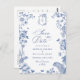 Carte Postale Élégant Faire-Part de Mariage Toile de Jouy Bleue