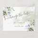 Elégant Dusty Blue gomme Eucalyptus feuillage, accentué avec élégant script de calligraphie moderne Changer la Date en fausse carte postale or. Copyright © 2016-2021 Bombino Designs.
