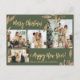 Carte Postale Elegant Gold Leafy 4 Photo Collage Postc de Noël