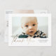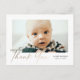 Élégant Carte de remerciements photo de bébé Script Gold. Le dos comprend un message de la famille et une 2ème photo. Cliquez sur le bouton Modifier pour customiser cette conception avec vos photos et détails.