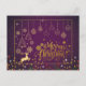 Elégant Joyeux Noël, Bonne Fête Carte postale Célébrez la saison avec cette carte postale amusante avec rennes d'or, couronnes avec un arrière - plan violet, ajoutez votre message et ajoutez votre adresse de retour pour faciliter l'envoi. Simple et amusant, mais moderne et festif, une carte postale parfaite pour envoyer des voeux de vacances.