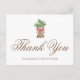 Cette carte de remerciement de mariage de Noël vintage présente une belle cloche de vacances nostalgique enveloppée dans un nœud rouge festif sous des feuilles de pin vertes. Écriture cursive élégante en typographie marron vintage pour une mariée et un marié minimalistes traditionnels en hiver.