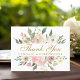 Belle aquarelle rose vif peony floral merci cartes postales avec élégant script d'or antique entre la magnifique bordure de sauge feuilles eucalyptus vert et de jolies fleurs. Une carte postale chic mariage pour remercier vos invités.