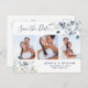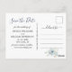 Elégante Dusty Blue Foliage Wedding Enregistrer la date Carte postale.