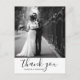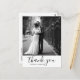 Elégant noir & blanc merci cartes postales à envoyer à vos invités mariages. Ajoutez votre propre photo et vos noms de mariages magnifiques. Sous la photo il dit "merci" en caractères de script modernes. À l'arrière, il y a un message de remerciement par défaut que vous pouvez modifier. Votre adresse de retour peut également être ajoutée facilement.