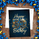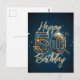Carte Postale Élégant Or et Bleu Pierreries 50e Anniversaire