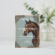 Ce design faire-part de mariage présente un cheval saisissant, gracieusement placé contre un arrière - plan beige chaleureux. Des motifs ornés de fleurs et de défilement encadrent l'image, ajoutant une touche de sophistication et de charme. Les détails complexes de la frontière dans les tons noir et or évoquent une élégance intemporelle, ce qui en fait une représentation parfaite de l'amour, de la force et de la beauté pour une célébration mariage mémorable. Options de personnalisation : Personnalisez avec vos noms, date mariage et détails du lieu pour créer une conservation unique pour votre journée spéciale.