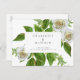 Élégant Rose Blanche et Feuillage Mariage Faire Part de Date. Simple. Site Web. Feuillage. Carte Postale.