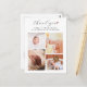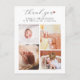 Cette carte postale chic et intemporelle de remerciement est idéale pour tous ceux qui veulent remercier les invités à leur baby shower pour les cadeaux, l'amour et le soutien qu'ils ont reçus et pour présenter leur nouveau membre de la famille. Le design moderne et élégant a un style minimaliste et comprend quatre photos personnalisables placées dans le collage, une typographie simple et élégante pour vos informations, et un script chic pour un en-tête "merci". Au contraire, il y a un message de remerciement personnalisable avec vos noms. Utilisez le bouton "personnaliser" pour remplacer les photos et modifier le texte.