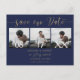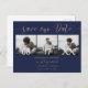 Elégant or et bleu marine script 3 photos enregistrer la date, toutes les couleurs sont entièrement modifiables pour correspondre à votre jeu de couleurs mariage.