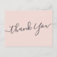 Élégant rose vif, merci carte postale avec le texte "merci" à travers la carte dans une police manuscrite de style script