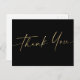 Élégante carte postale noire de remerciement avec le texte "merci" à travers la carte dans une police manuscrite de script
