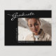 Cette carte postale moderne et élégante de remise de diplômes, présente des éléments design de texte moderne fusionnés avec un élégant script de calligraphie. La photo horizontale des diplômés est placée avec art sur le devant de la carte tandis que le dos de la carte offre des espaces de texte personnalisés pour des informations sur la graduation et le futur voyage. Pour voir d'autres articles comme celui-ci, visitez mon magasin ici à "www.Zazzle.com/LakeViewCardCo". Merci