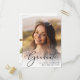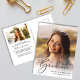 Célébrez les réalisations de votre diplômé avec cette carte postale élégante de remise de diplômes et d'invitation à la grande fête. Sa photo remplit la carte de "Graduate" superposée sur le dessus dans un script élégant ; en dessous, ajouter son nom, l'école et l'année de classe. Au verso, ajoutez une photo supplémentaire et les détails de la fête principale.