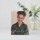 Cette seule remise de diplômes photo merci carte postale est un excellent moyen pour votre diplômé de montrer l'appréciation pour les cadeaux et le soutien. Avec un script moderne et élégant "merci" en blanc sur une photo verticale, ce design offre également de la place pour la personnalisation, y compris le nom ou d'autres textes. Le dos de la carte postale a de la place pour le texte personnalisé, qui peut également être laissé vide pour permettre un message manuscrit. Cet élégant merci de votre travail pour un diplômé du secondaire ou un diplômé du collège et est assez simple pour travailler pour d'autres occasions aussi. Annonces de graduation et invitations disponibles dans la collection de Lea Delaveris Design.
