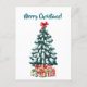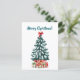 Send warm holiday wishes with this beautifully designed Christmas postcard featuring a classic snow-covered Christmas tree adorned with a red bow and surrounded by festive wrapped gifts. Perfect for spreading joy and cheer this holiday season, this Christmas card blends elegant watercolor artistry with timeless holiday charm. Personalize it with a custom text at the top and choose a background color.