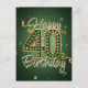 Carte Postale Élégant Vert Émeraude et Or 40e Anniversaire