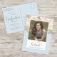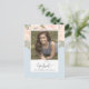 Ce design comprend des cartes de faire-part de diplôme, idéal pour le modèle photo d'image senior, une élégante typographie de script simple, avec du champagne floral à l'aquarelle, une classe moderne de votre année calligraphie, un casquette de mortier chic Light Blue, avec une fête élégante, une université secondaire, une invitation minimaliste, avec une femme adresse de retour fille