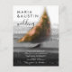Elégante aquarelle Peint Mer Paysage et Bateau à Voile Doré Ombre Peinture Faire-part de mariage noir et blanc.