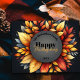 Cette élégante carte postale Thanksgiving est ornée d'une plaque centrale en forme circulaire grise et d'une garniture dorée sophistiquée. La plaque présente un texte entièrement personnalisable, vous permettant de le personnaliser avec votre nom de famille, un accueil chaleureux "Bon thanksgiving" et l'année en cours. La moitié supérieure du cercle affiche le nom de famille dans un script cursif élégant, tandis que les lettres plus grandes et audacieuses ci-dessous transmettent le message festif. L'année "20XX" en bas peut être mise à jour pour refléter l'année en cours. Autour de la plaque se trouve un florilège de feuilles d'automne aux tons riches de rouge, d'orange, de jaune et de marron, créant une bordure chaude et accueillante qui saisit l'essence de l'automne. La disposition qui se recoupe et la taille variable des feuilles ajoutent de la profondeur et de l'intérêt à la conception.
