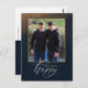 Économisez sur l'affranchissement en envoyant cette carte postale du Nouvel An à la famille et aux amis. Design incorpore saphir et or de minuit et peut être personnalisé en ajoutant votre photo préférée, les noms des membres de la famille et l'adresse de retour.