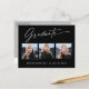 Tendance, moderne et élégante graduation 3 cartes postales de faire-part photo, avec éléments design de texte moderne avec script d'encre de calligraphie. Les photos du diplômé sur le devant de la carte sont astucieusement accentuées avec un dégradé délicat et minimaliste. Le dos de la carte offre des espaces de texte personnalisés pour des informations sur votre diplôme ou peut être effacé si vous souhaitez écrire un message à la main. Noir et blanc ou customiser facilement l'arrière - plan pour correspondre à la couleur primaire de votre école ou à n'importe quelle couleur de votre choix. Idéal pour les étudiants du secondaire, collégial et universitaire.