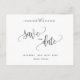 Annoncez votre date de mariage avec ce mariage élégant enregistrer la carte postale de date! Détails de calligraphie manuscrite moderne. Style simple et propre. Blanc et noir. Zone située à l'arrière pour obtenir tous les détails et les noms des mariages, ainsi que la zone pour le site Web mariage ou le message pour vos invités (c.-à-d. "Can't wait to see you here!). Même design en présentation de carte plate disponible.