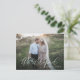 Annoncez votre mariage avec nos élégantes faire-part de mariage. La carte postale affiche votre photo de mariage horizontale préférée avec "We Eloped" dans une superposition de script de calligraphie blanche. Personnalisez la carte postale du faire-part mariage en ajoutant vos noms sur le devant. Ajoutez votre adresse de retour, les détails de l'hébergement du mariage, les informations de réception, etc. au dos de la carte postale.