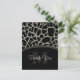Un imprimé de girafe noir et aluminium gris chic et élégant, merci carte postale avec un élégant monogramme. Personnalisez ce design poster de animal de luxe moderne en ajoutant votre message de remerciement initial et spécial monogrammé à la zone de texte personnalisée au dos.