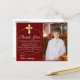 Remerciez votre famille et vos proches pour avoir assisté à la confirmation de votre fils avec cette élégante croix dorée et cette carte postale de remerciement de confirmation de couleur bordeaux. Cette carte de remerciement religieuse présente une croix dorée élégante avec un cadre doré sur un fond bordeaux riche. Insérez votre nom et votre adresse de retour au verso de la carte postale pour plus de simplicité et de commodité. Remplacez la photo générique par une image de votre enfant. Parfait pour la confirmation ou la communion solennelle de votre fils.