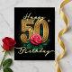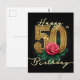 Carte Postale Élégante Rose Fleur et Luxueux Or 50e Anniversaire