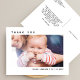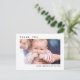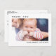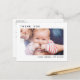 Cette carte postale de remerciement moderne et élégante pour une baby shower personnalisée avec photo est un moyen charmant de remercier les amis et la famille pour les cadeaux et le soutien reçus lors de votre baby shower ! Le design moderne et tendance présente la photo de votre bébé au centre et le texte dans une typographie moderne simple. En haut, il y a un en-tête de remerciement et en bas, les détails de votre bébé. Votre message de remerciement entièrement personnalisable est au verso, dans une police décontractée noire sur fond blanc. Cliquez sur le bouton de personnalisation pour modifier la carte avec vos informations.