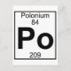 Le quatre-vingt-quatrième élément (Polonium) du tableau Périodique. Version complète. Grand cadeau pour un 84e anniversaire par exemple.