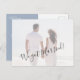 Ajoutez votre photo préférée à ces cartes postales d'elopement. La couleur bleue poussiéreuse sur le dos peut être changée pour correspondre à votre photo. Ces cartes postales budgétaires peuvent vous faire économiser de l'argent. Le service de design en direct peut vous aider à mettre en page votre design si nécessaire. CORRESPONDRE des articles dans notre magasin.