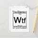 La science a isolé un nouveau produit chimique dans le tableau périodique - l'élément de confusion, abrégé sous le nom de WTF. Vous le rencontrez tous les jours - il est responsable de la frustration et de la confusion lorsque vous envoyez des textos, jouez ou parlez à votre patron ou à vos parents. Chimie d'argot pour les masses - un cadeau parfait pour n'importe qui !