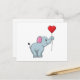 Carte Postale Éléphant avec ballon en forme de cœur
