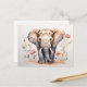 Carte Postale Eléphant et fleurs de charme aquarelle peinture