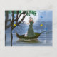 Carte Postale Elf & White Cat équitation sur un Imaginaire feuil