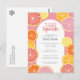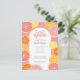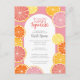 Des fruits d'agrumes fantaisistes en citron, roses, corail, orange et pamplemousse rouge rubis. Les tranches d'agrumes dessinées à la main comprennent une texture peinte à l'aquarelle pour une touche juteuse sur une invitation de douche de mariage colorée.