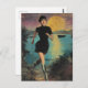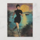 Carte Postale Elle tourne sur la plage dans une robe noire botte