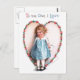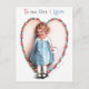 Une charmante carte postale vintage Valentine avec une mignonne petite fille timide avec une lettre d'amour devant un beau coeur de fleurs, peinte par l'illustratrice et artiste commerciale américaine Ellen Hattie Clapsaddle.
