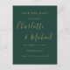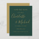 Doté de noms de style signature, cet élégant or et vert émeraude enregistrer la carte de date peut être personnalisée avec vos informations spéciales de mariage dans des lettres chic. Conçu par Thisisnotme©