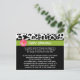 Un drôle vous remercie carte postale d'un cadeau de baby shower avec une frontière noire et blanche à la mode d'empreinte de léopard et une marguerite rose mignonne. L'avant a deux définitions de baby shower : 1) une partie donnée par des amis d'une future mère pour préparer et célébrer l'arrivée de son nouveau bébé précieux. 2) les presque deux minutes de temps une nouvelle mère prend chaque semaine après que son bébé soit né (si elle est si chanceuse) pour brouiller dans une douche de l'eau glacée, accompagnée des bruits cacophoniques d'un enfant en bas âge frappant sur la porte et d'un nouveau-né criant sa tête à l'arrière-plan. Personnalisez un special vous remercient dos de message dessus.