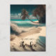 Eau turquoise et palmiers sur une carte postale de plage de sable blanc Citation : "Amoureux de la mer".