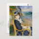 Carte postale avec le tableau, By the Seashore (1883) du peintre français Pierre-Auguste Renoir (1841-1919). Portrait d'une jeune femme assise en robe et bonnet victoriens bleus sur la plage du bord de mer. Renoir a été profondément influencé par l'art de la renaissance après un voyage en Italie en 1881-1882.