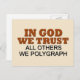 En Dieu, Nous Avons Confiance. Tous Les Autres Que Nous Polygraphions ! Drôle et ironique Parodie de la devise américaine dire / slogan. La couleur marron arrière - plan peut être changée en n'importe quelle couleur.