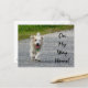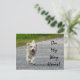 Ce charmant petit chien blanc terrier court dans la rue avec joie et sa langue traîne dans l'excitation. Ce design de carte postale est un excellent moyen de faire savoir aux proches que vous êtes heureux de rentrer chez vous.