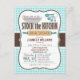 Stock mignon le Kitchen nuptiale wedding shower invitation sur brun et aqua turquoise en vichy motif. Il est équipé d'une broche à rouler rétro, mélangeant le bol, le couteau et les ustensiles de cuisine des tasses de mesure. Amis Invitations à stock la cuisine de la mariée et le garde-manger avec nourriture et appareils électroménagers.